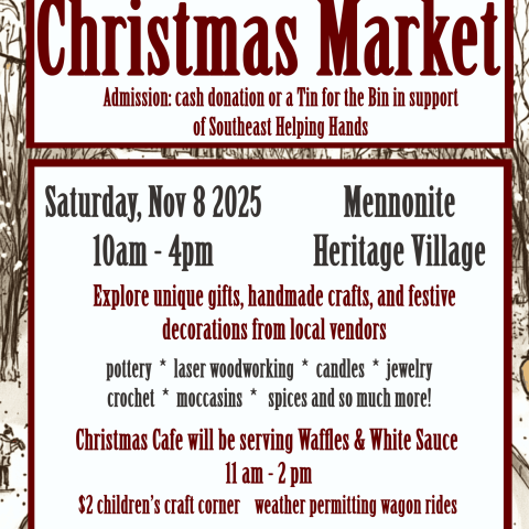Mennonite Heritage Village is located on historic Treaty 1 territory, home and lands of the Anishinaabe (Ojibwe), Ininew (Cree), Oji-Cree, the Dakota peoples, and in the homeland of the Red River Métis Nation.