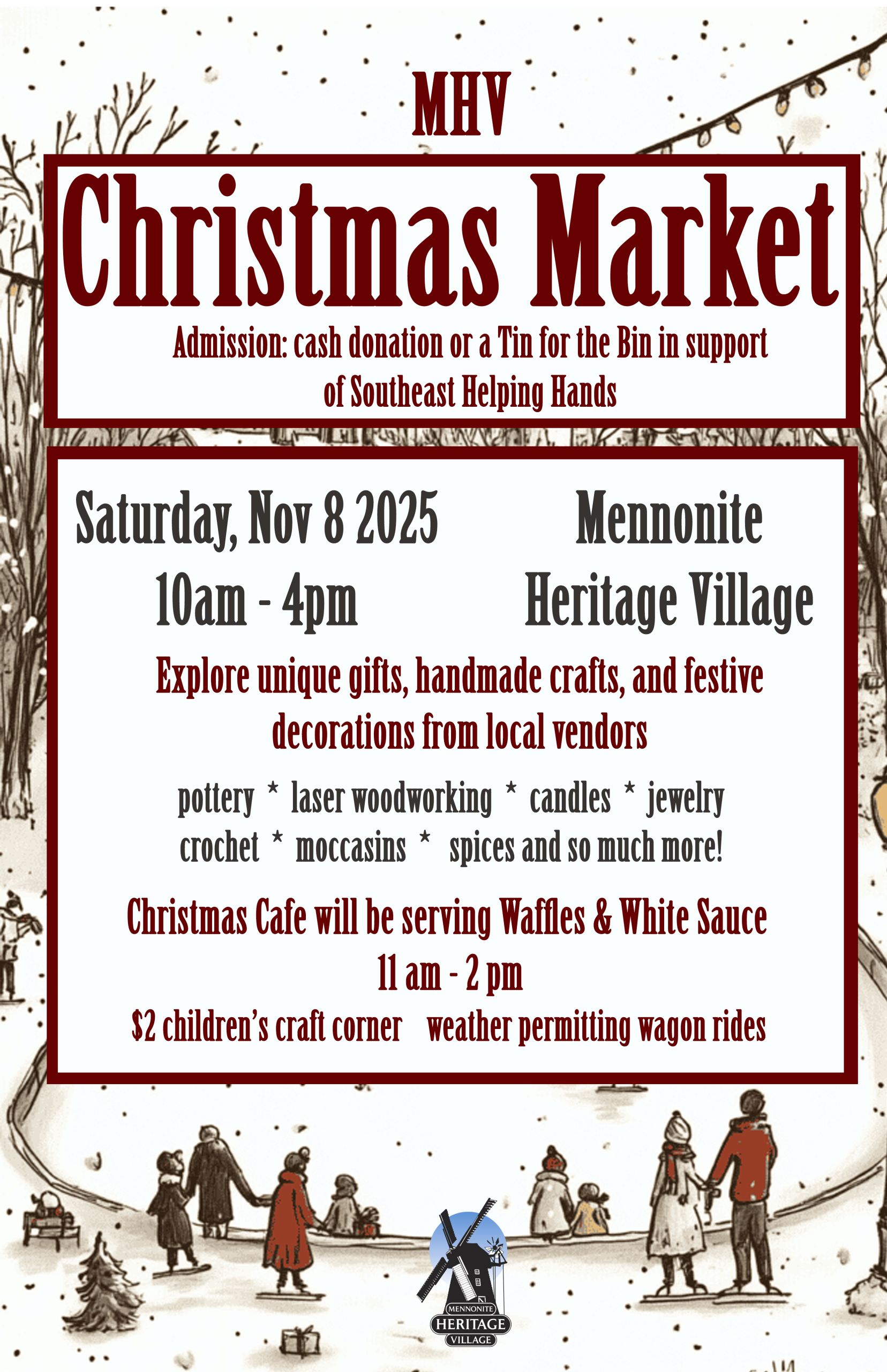 Admission is a cash donation or a Tin for the Bin in support of Southeast Helping Hands. Enjoy waffles with white sauce, local handmade crafts, and wagon rides!