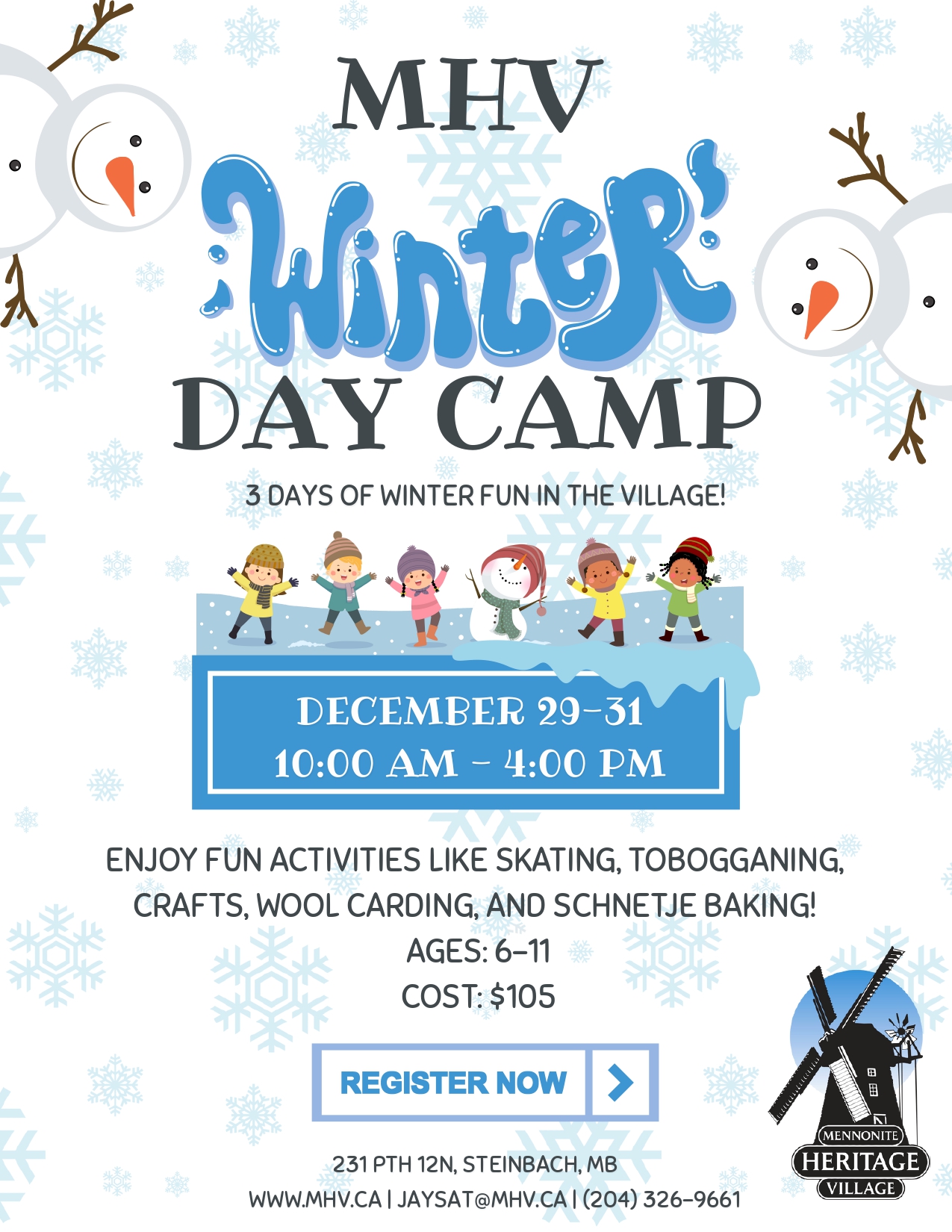 MHV is looking forward to our 5th annual Winter Day Camp! If you’re looking for a safe, fun, and local place for your kids to spend time during the winter break – our Winter Day Camp is for you! Our education staff will lead a three-day winter camp for children aged 6-11 filled with crafts, games, and pioneer activities. We are planning a mixture of outdoor and indoor activities to explore the museum and the outdoor natural environment. We look forward to having you!