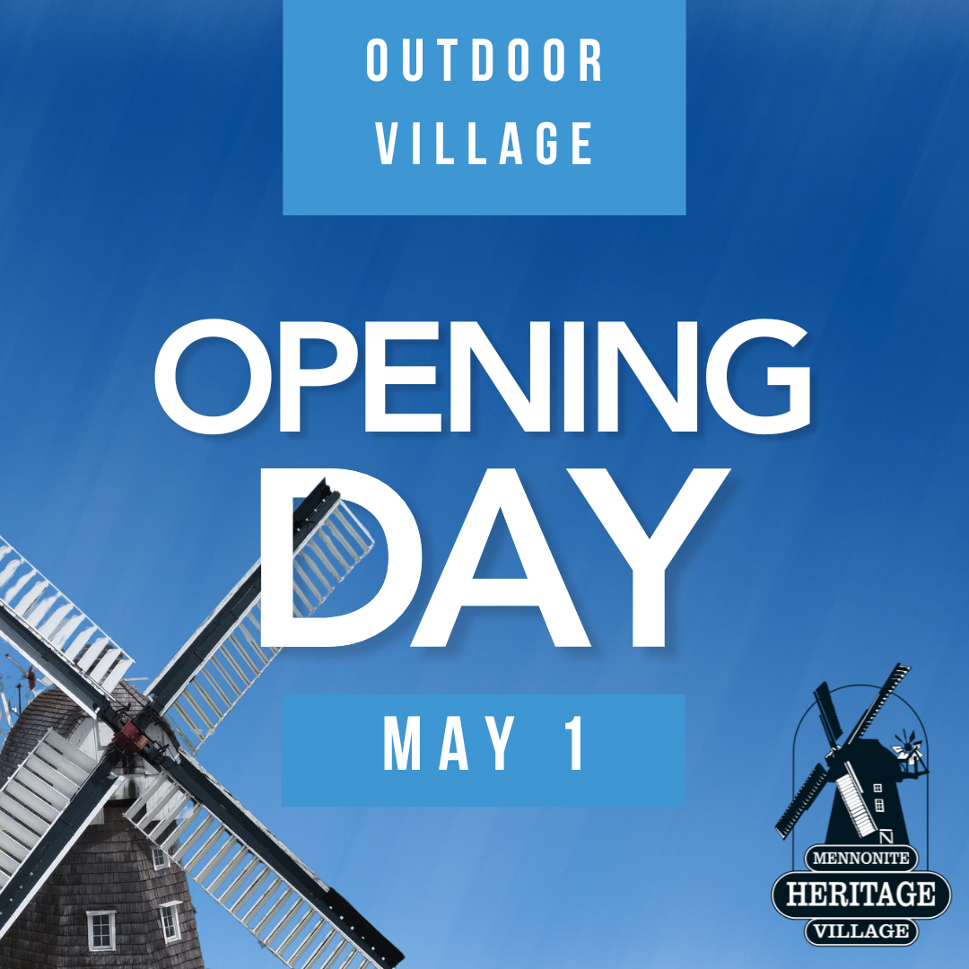 Outdoor Village and Museum Hours 9:00am to 5:00pm Monday to Saturday 11:30am to 5:00pm on Sunday Livery Barn Restaurant Hours 11:00am to 4:00pm Monday to Saturday 11:30am to 4:00pm on Sunday The wait is over! Step back in time and experience the sights, sounds, and flavours of history as the Outdoor Village at Mennonite
