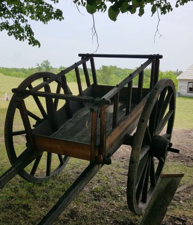 Prior to the arrival of the first Mennonites in August of 1874, Métis men hired by Jacob Shantz constructed the four immigrations sheds 8 km east of the Rat and Red River landing, just south of present-day Niverville. Then upon arrival, Métis carters hired by William Hespeler transported the new arrivals and supplies from the steamboat landing site to the immigration sheds. Moreover, once settled into the sheds, the family heads were taken on scouting missions through the northern half of the East Reserve by Métis drivers familiar with the land, using Red River carts.