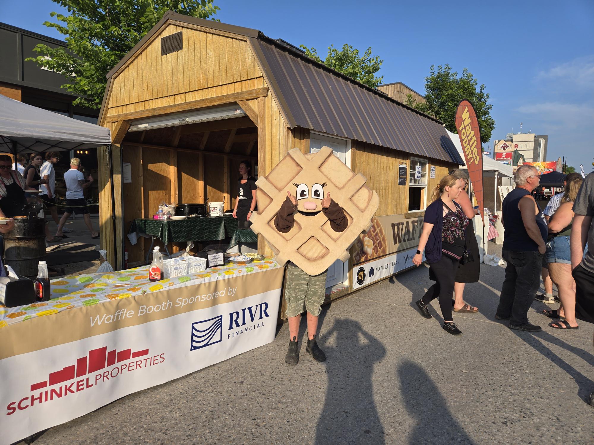 Mennonite Heritage Village has been a participant every year since the festival’s beginning, as a contributor of community heritage. Over the years, we have displayed a variety of historical exhibits, offered heritage games, provided opportunities for genealogy research, and led historical walking tours of Steinbach. But the main attraction that the museum brings to downtown Steinbach is our Waffle Booth, where we sell flame baked waffles with vanilla white sauce. This tasty treat is only available a few times during our summer festivals at the museum, so this is a great opportunity for people to get their first waffle and white sauce of the season.